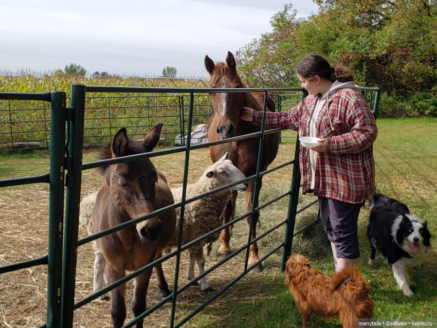 Я конечно не знаю, насколько внимательны другие хозяева своих животных. Но только стоит дать своим питомцам волю, как разум и таланты так и сыпятся из них. Майка не пропустит момента, когда наш папа, Женя большой, несет воду коровам. Остановит его мордой за одежду и потребует воды для себя. Естественно, папа покоряется. Или сразу же выхватывает сено с вил, которое я заношу для всех жителей сарая. Приходится его класть ей в первую очередь. Или ловит Женю большого за рукав и бубнит ему в ухо что-то осуждающее. И тому надо возвращаться в дом, чтобы угостить такую умницу кусочком хлеба…