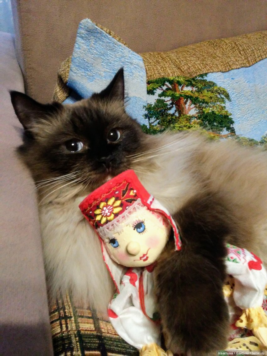 Котёнок очень шебутной. Уже и кукол за волосы таскал (предпочитает редких винтажек), и на ёлку залезал, и на шторах качался. Но мы уже не представляем свой дом без весёлого Мурзика! А у меня появилось новое хобби: фоткать, как мило спят мои любимые котики!