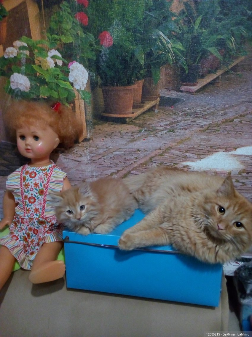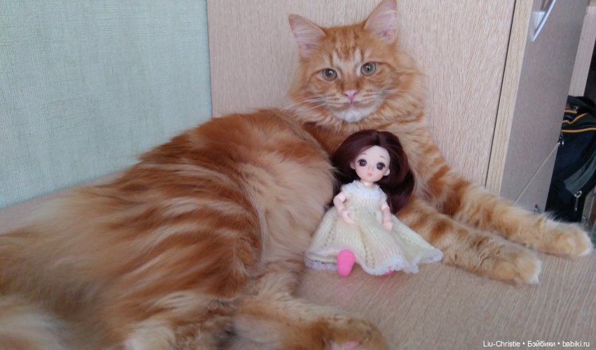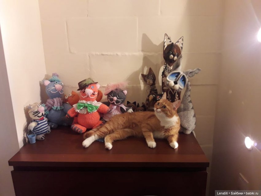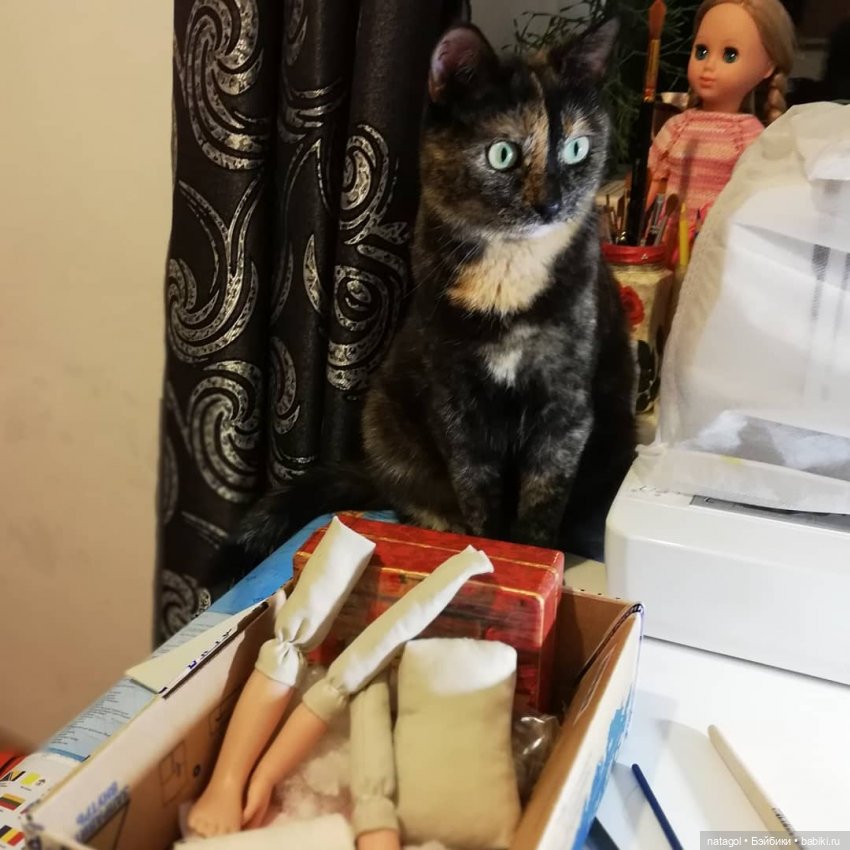 Муся не понимала, почему так холоден к ней кот. Пыталась с ним играть, общаться. Но Кеша дулся. Он привык быть хозяином в доме. Хотя, со временем оттаил и он. Кеша — пухлый полосатик. Для меня он как младший ребёнок. Моя подруга, заядлая собачница, говорит, что он ведёт себя как собачка! Кеша всегда рядом со мной. Спит рядышком, завтракаем вместе. Кот участвует во всех делах. Очень любит мой Кенни, когда я оформляю декорации для кукольных фото-сессий. Обязательно залезает на них. Ещё обожает распаковочки. Коробочки и пакетики — наше всё!