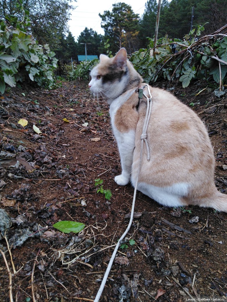 Котики были умильны и пушисты, но в руки не давались. Дочка стала нудеть, что надо взять одного котёночка домой. И в последний день отдыха, я решилась приманить едой и изловить одного. Самого, на наш взгляд, общительного котёнка. Чёрненького пушистика, который даже играл немного с моей Лизой, охотился на веточку, которой она возила.