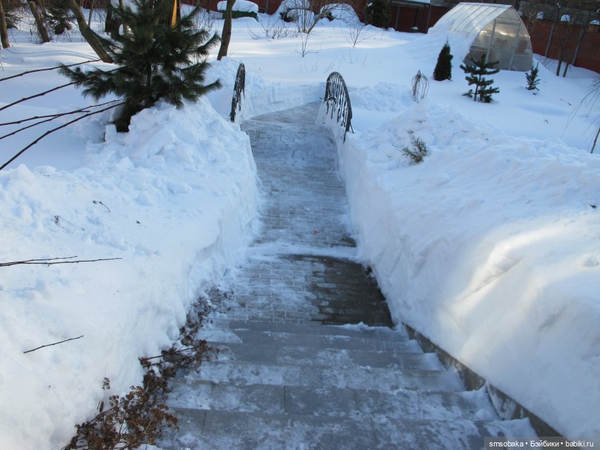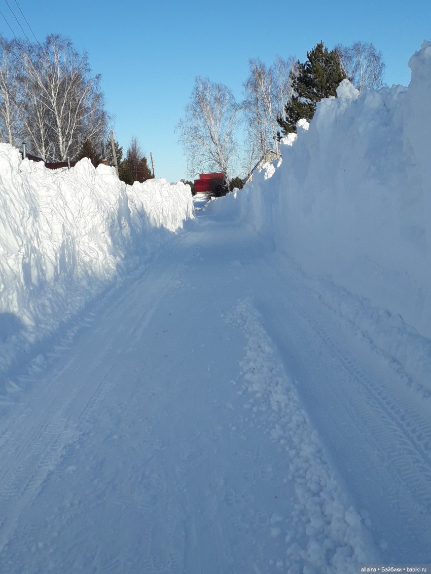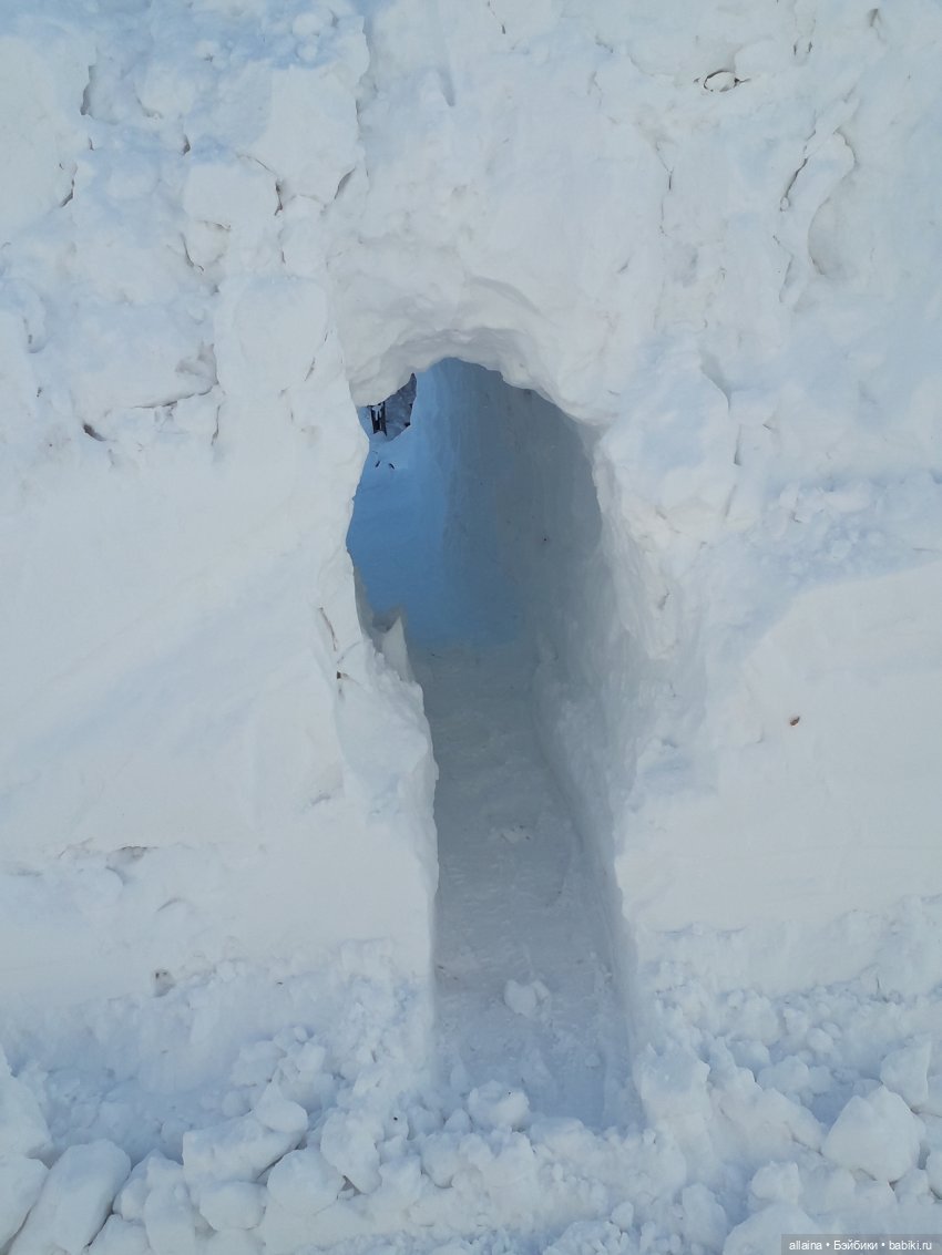 Вот через такой тоннель я из дома выхожу. Перед калиткой сугроб около 5 метров высотой.