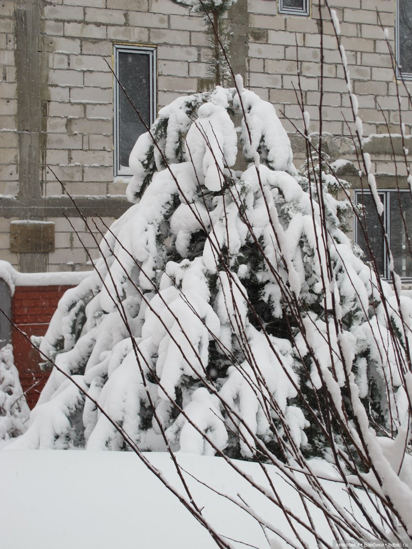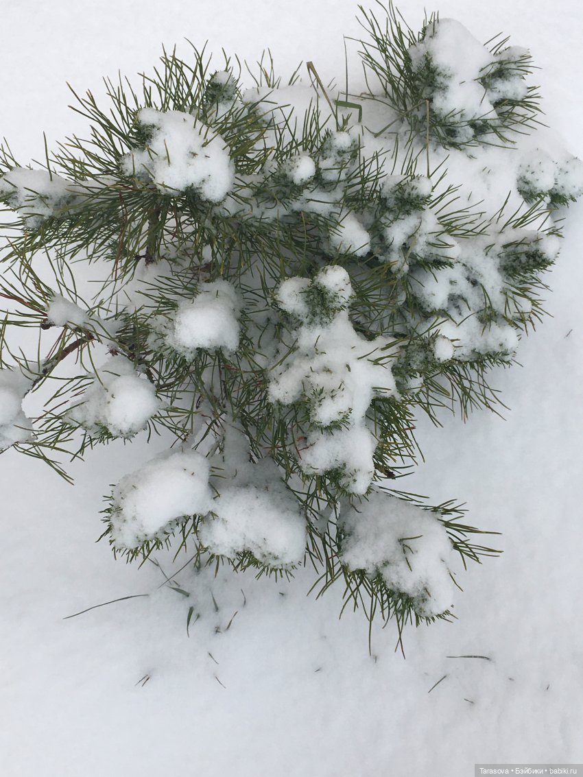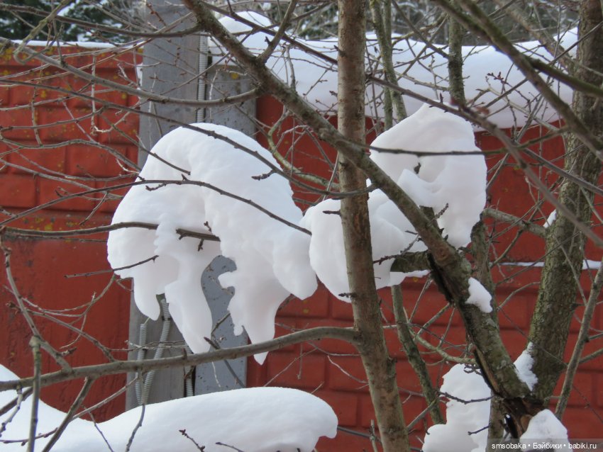 Не могла не сфотографировать такое обилие снега.Все кустики и деревья в снегу.