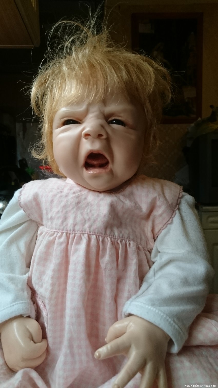 Купила реборна, сажаю в витрину, в красивом платье, любуюсь — муж говорит — «как труп» — продала сразу. Нет, конечно, она не выглядела так — но после такой характеристики для меня уже выглядела. Девочку забрала знакомая, встречались вживую. У нее были самые лучшие впечатления от куколки!