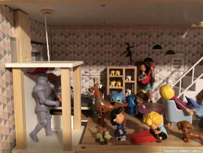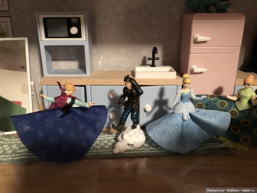 Думаю, такая мебелюшка с мини-куклами может служить игрушками для куколок бОльшего размера), для тех же Еви или Келли.