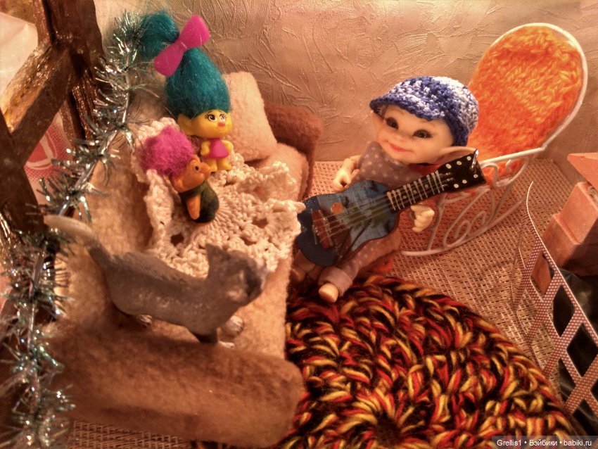 А Кузя в спячке сейчас и я чувствую, что лучшего фотофона, чем природа для него найти трудно)) так что жду открытия дачного сезона и буду снимать приключения гнома в естественной среде обитания. Если будет вдохновение. А живет он пока с тролликами) Они с НГ к нему прибились, в домике места много)