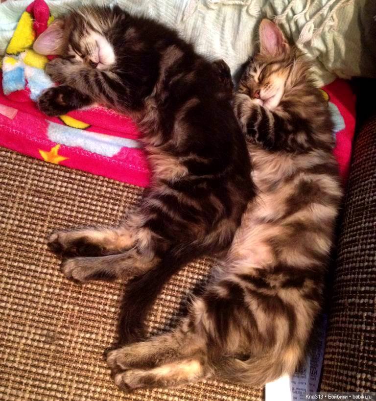 Живут у нас два Мейн-Куна (мальчик и девочка). Сейчас им уже 1,5 года. Разница в возрасте 2 дня)))