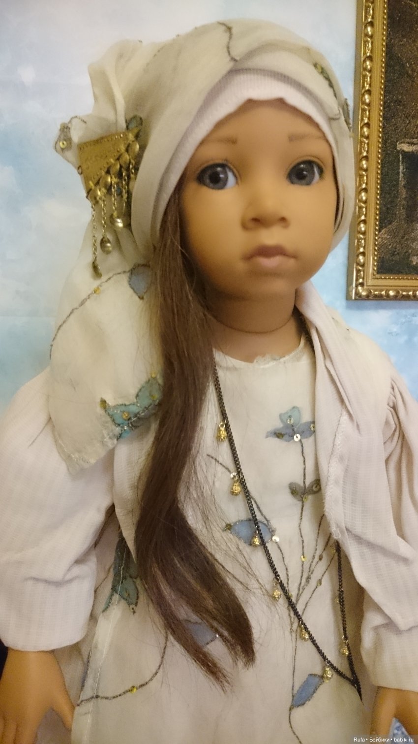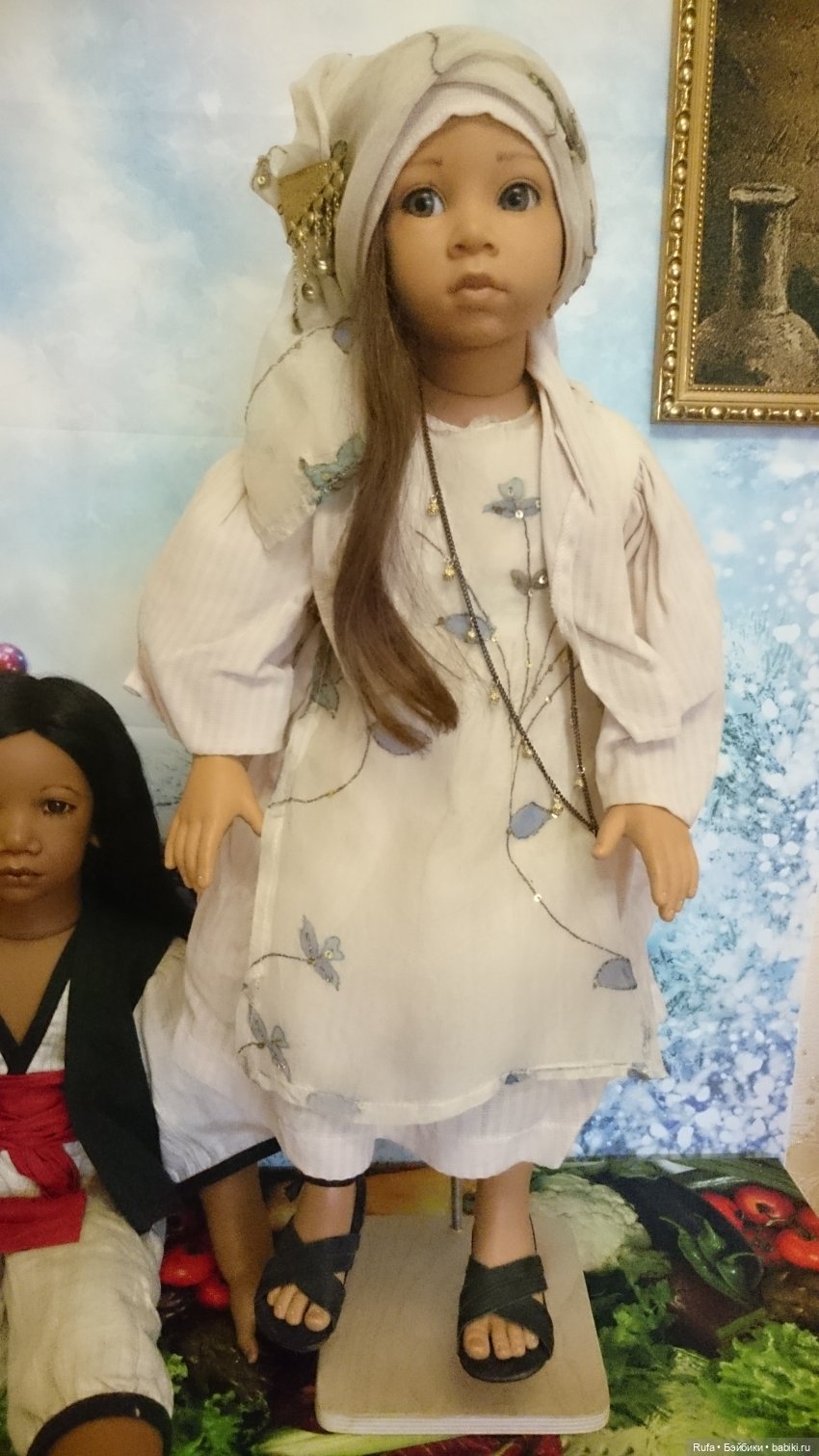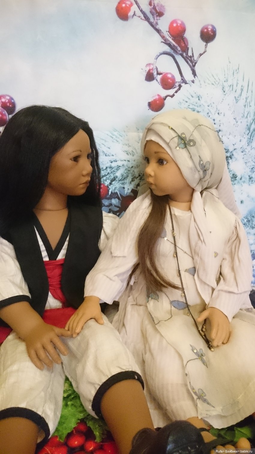 Здравствуйте, дорогие друзья! Хочу представить вашему вниманию историю о встрече! Кто уже знает что я обожаю Индию и много лет посвятила культуре этой страны. Естественно все мое увлечение сказывается и на куколках. Люблю кукол брюнеток. Отсматривала много фото в поисках героини на творчество и вот нашла ее… когда она ко мне приехала, сразу меня покорила своей нежностью не смотря на строгий взгляд и своей красотой. Но девочка была грустной и какой то застывшей, немного ее порадовал новый индийский наряд из коллекции индийского дизайнера, сшитый мной как реплика. Я стала думать чего или кого не хватает и узнала у предыдущей хозяйки что есть близкий друг у моей девочки и живет у неё. Когда увидела фото поняла что это именно тот друг кто нужен моей Сафине ( я ее так назвала ). Через некоторе время приобрела и друга, но меня эта куколка совсем не вдохновляла как сестренка, а вот как братишка пожалуй! Назвала Арьян, и пришла в голову фраза из индийского кино: никогда не говори прощай! Потому что есть душевная связь и теперь доказано что не только между людьми но и между куколками. Где то там бьется их сердечко и призывает к счастливой встрече!