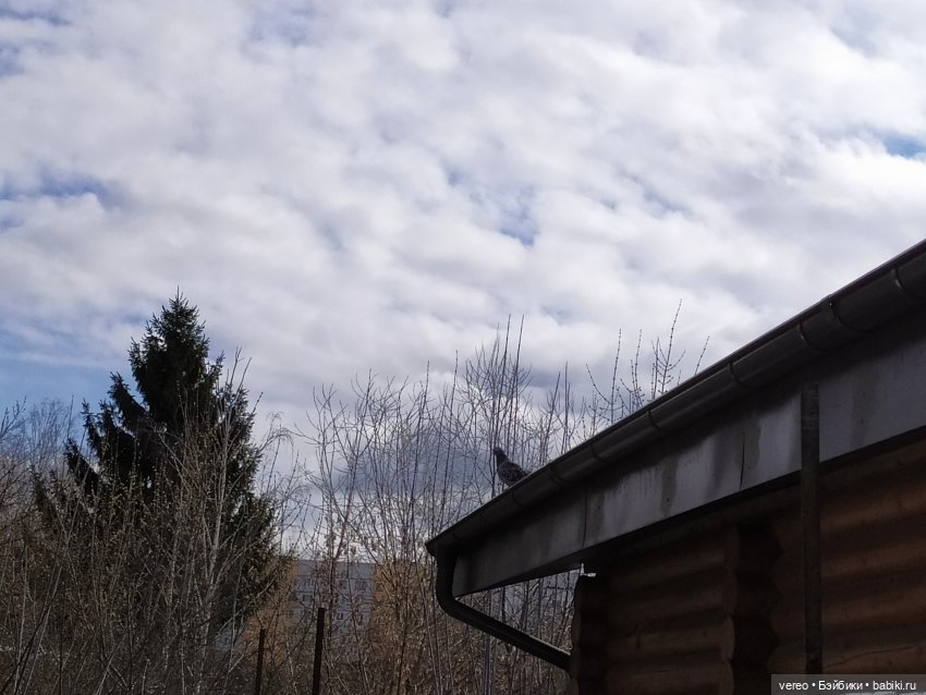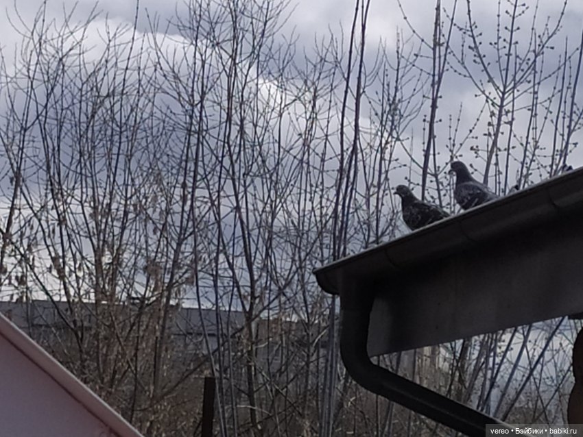 Коты занимают позицию на крыше сарая, греются на солнце, обещанный дождь и снег не состоялись. А голуби, от 2 до 7 голов, в последнее время регулярно прилетают. Еды не жалко, но они в основном сидят, ничего не едят, а гордо охраняют продовольствие, тем самым отпугивая других.