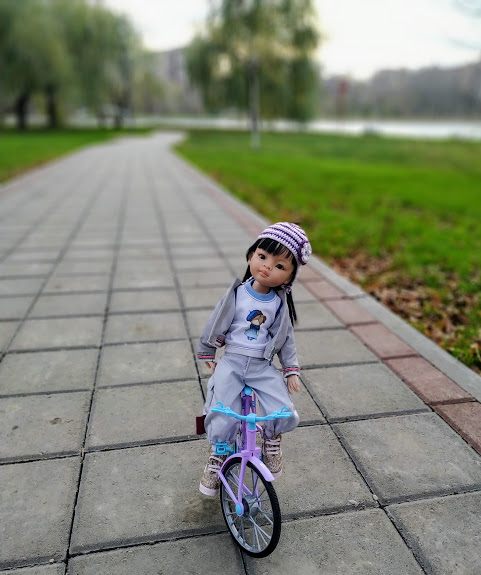У наших девочек велосипеда увы, нет, но есть скутер для прогулок…