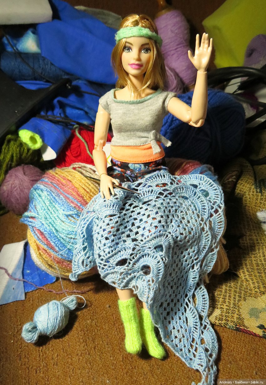 У меня пока одна барби, и та, можно сказать, случайно. Хотела сгибридить с Эдной, в итоге разгибридила обратно… Потому что спустя время захотелось именно барби. Максимально ошарниренную и желательно пышку. Начали искать образ этой куколки, она активно подсказывает, прямо сейчас сидит после стрижки с мокрыми волосами под резинкой, фоткаться в таком виде стесняется, )) но передаёт привет. И хочу ещё парочку. Уже нашла 2-3 тех, кого хочу. Куколок ещё не купила (коплю денежку)), а уже придумываются для них одёжки. Жаль, нельзя уже шить-вязать, пока мерить не на кого. Вот совсем не ожидала, что понравятся барби! И, что характерно — да, нравятся далеко не все и даже не большинство. Ищу именно своих, наверное которые на меня чем-то похожи. Не внешне, конечно. Которые позволят отражать что-то внутреннее.