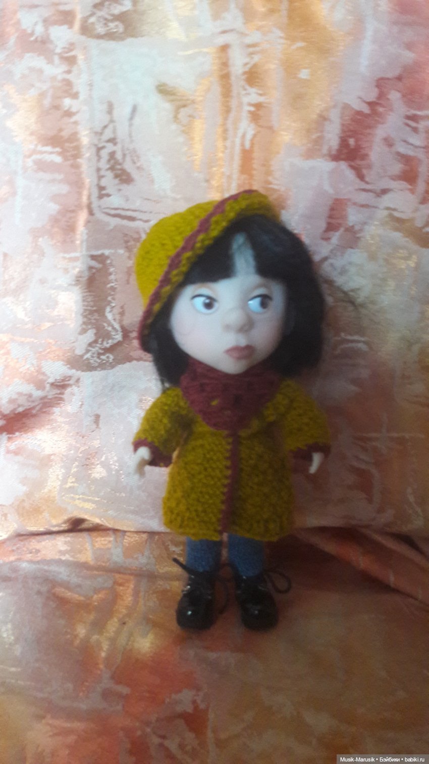 В общем, сфоткала с помощью Эдны первую шаль. Всё бы хорошо, если бы не одно «но». Эдна, как уже говорилось, весьма интересная и колоритная особа, но вот это выражение лица. Классное! Но одинаково скептичное, в каком ракурсе ни снимай… Вот тут-то меня и подрубило… Надо вернуть родную голову телу. Отыскала. Вернула. Кстати, снимать голову Эдны с барбейского тела оказалось ооочень проблематично, думала сломаю на фиг якорь. Но ничего, справилась кое-как.