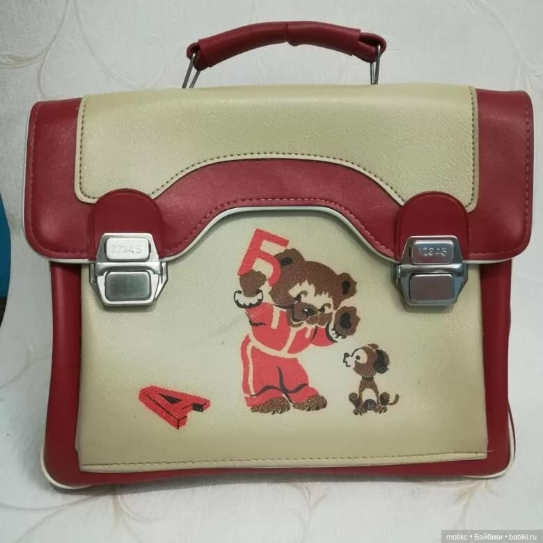 Потом у меня уже были всякие разные сумки, я их даже и не помню. Но вот одна запомнилась, потому что обида сидит занозой. Была мне куплена очаровательная белая сумка через плечо, тогда было модно. На ней был символ Олимпиады, но небольшой, скромный такой, а сама сумка была из какого- то необычного материала. Не гладкого, как обычно были школьные сумки, а это был какой- то вспененный пластик, на ощупь мягкий и бархатистый. А еще был вставлен кусок ткани типа синтетической дерюжки. И форма у нее была не разлапая, а вытянутая в длину. Очень стильная была сумочка, и очень мне нравилась. Ну и, конечно же, мне ее моментально разчиркали ручкой, и вывести это было невозможно, а потом еще и бритвой порезали. Да сих пор жалко!