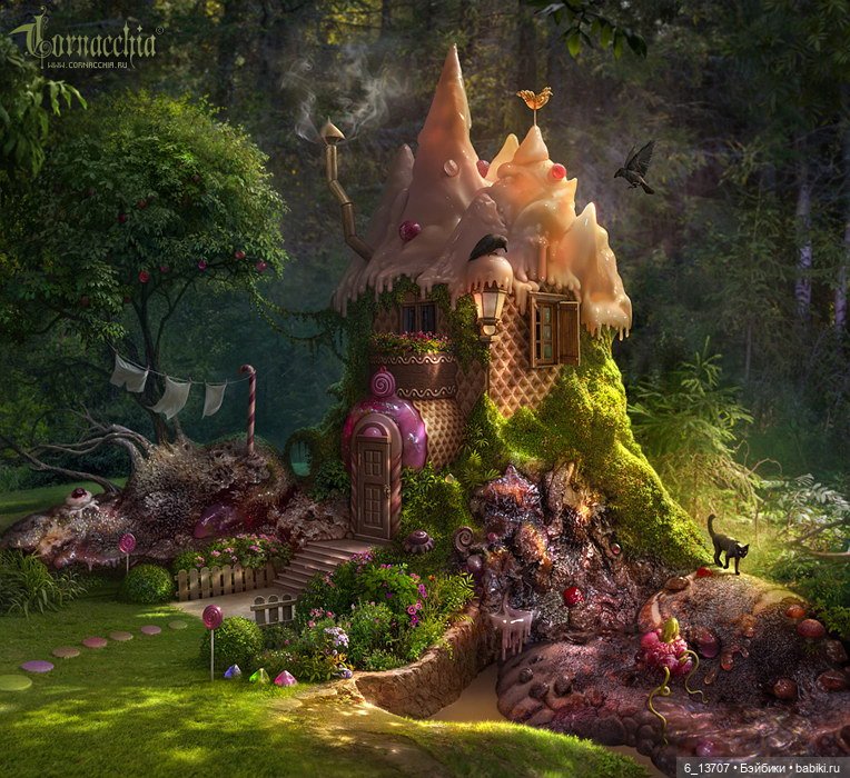 Кстати, под этот домик подходит бабушка с молдом «улыбается»: «Заходите, детки, дорогие...»