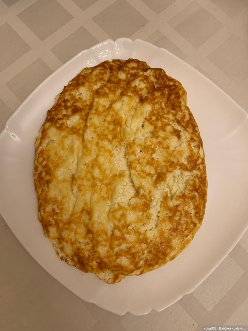 Всё смешать. Вылить на смазанную маслом сковороду и выпекать в разогретой духовке при 180' до золотистой корочки.
