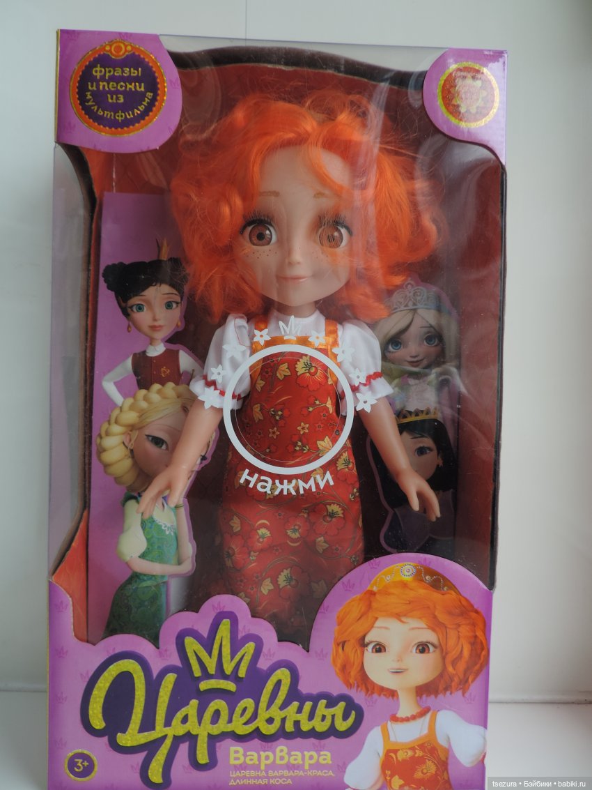 Но вот приятно удивил „Карапуз“ серией по популярному нынче мультфильму „Царевны“. Тела, конечно, лепть свои и не подумали. И, надеюсь, для тех гениев, которые упоно суют в кукол эти дибильные говорилки, в аду подогревают отдельный котёл… Но очень удачное решение образов героинь этого мультфильма. Дети в восторге. Дочке очень понравились. Гораздо больше, чем другая версия команды из этого мультфильма.