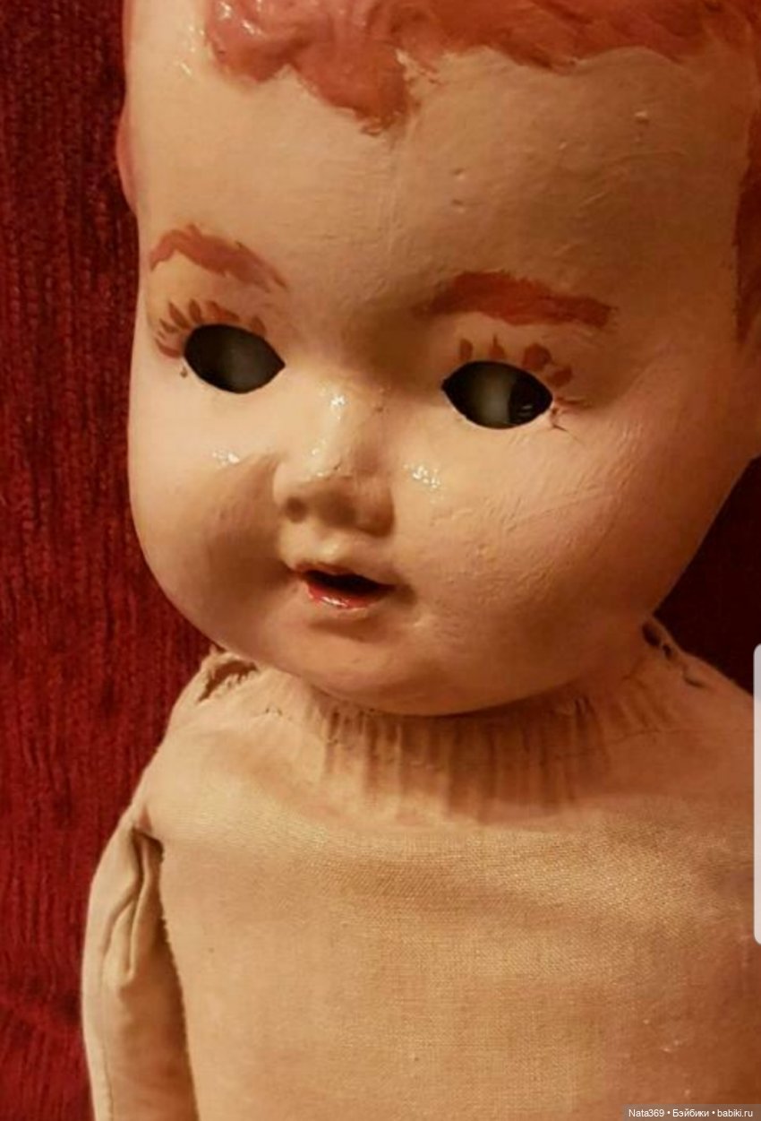 Здравствуйте дорогие форумчане! Появилась у меня такая вот куклена. из за карантина, пока дистанционно, ждет меня, но я видя ее только на фото, уже знаю, что будет моей любимицей. У нее мягконабивное тело, голова папье маше, клейма нет, волосы похожи на человеческие, руки отбиты, она мне кажется живым ребёнком бродяжкой, инвалидом, которой очень нужна емья, материнская любовь, еще она мне напоминает Кузю-домовенка. На всех фото у нее почему-то разное настроение, очень она мне живой кажется.