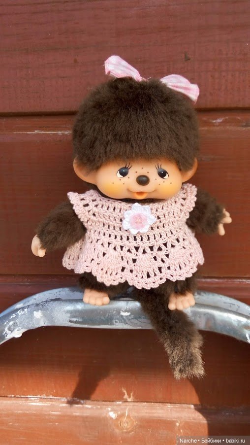 Так вот, лучше всего на эту роль подходила малышка Мончичи, а мне она самой нравилась. Но моя подруга убедила меня, что я себе такую еще найду. И это так, они периодически мне попадаются. Так что одела и подарила.)