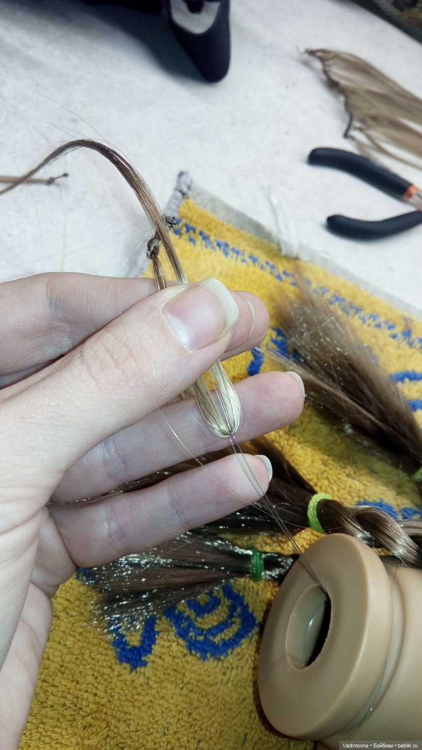 Трессы взяла 25см «Школа талантов» и так то они хорошие, густые, но завязать узелок просто не реально, скользят.Сижу психую, завтра попробую сильнее нагревать голову и фиксировать пряди горячим клеем.