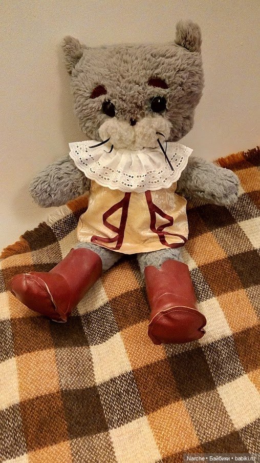 Добрый день, друзья. Сегодня моя небольшая коллекция винтажных кукол и советских игрушек пополнилась вот на такого милого плюшевого котика в сапогах производства артели «Московская игрушка» 50 – годов. Очень радостная покупка для меня)) Котик просто чудо!!! Котик крупненький, ростиком 58 см.
