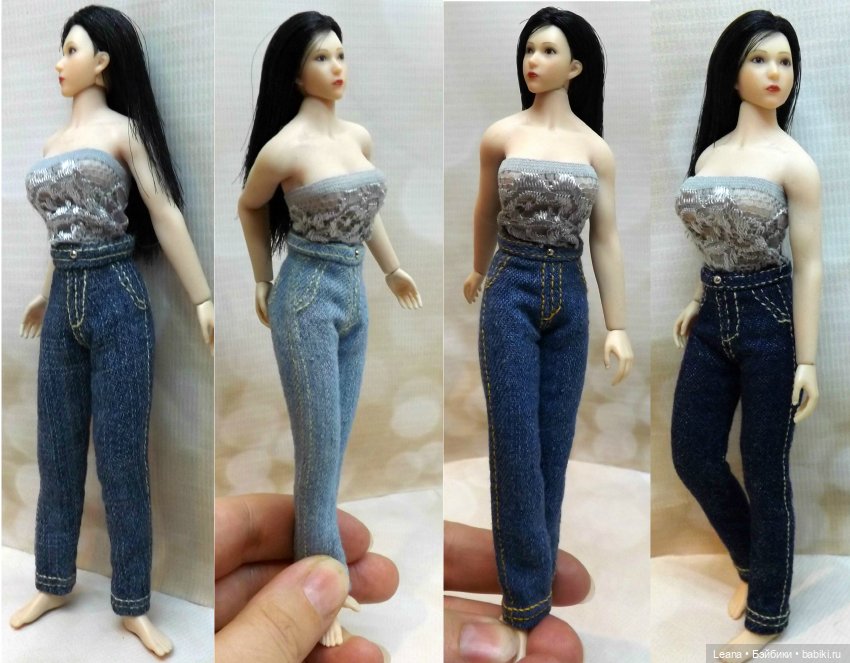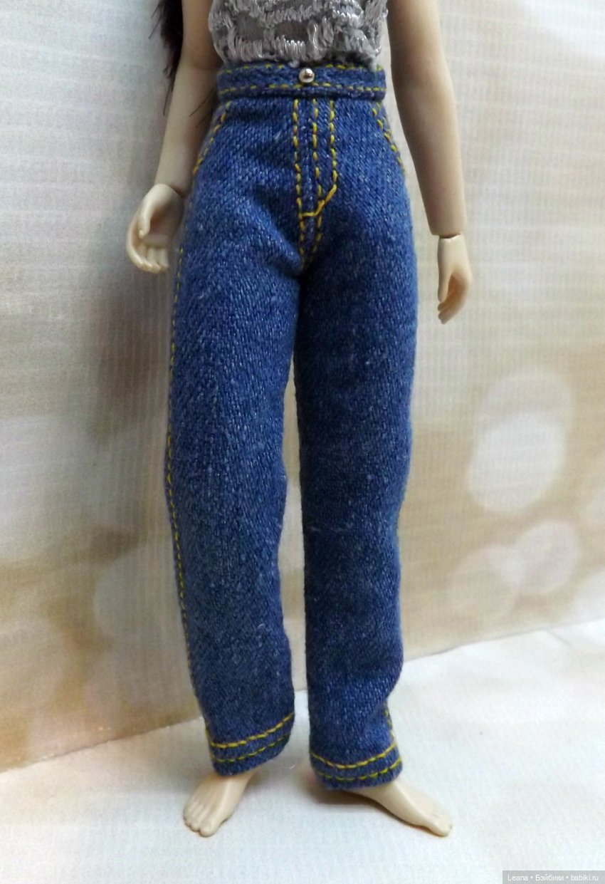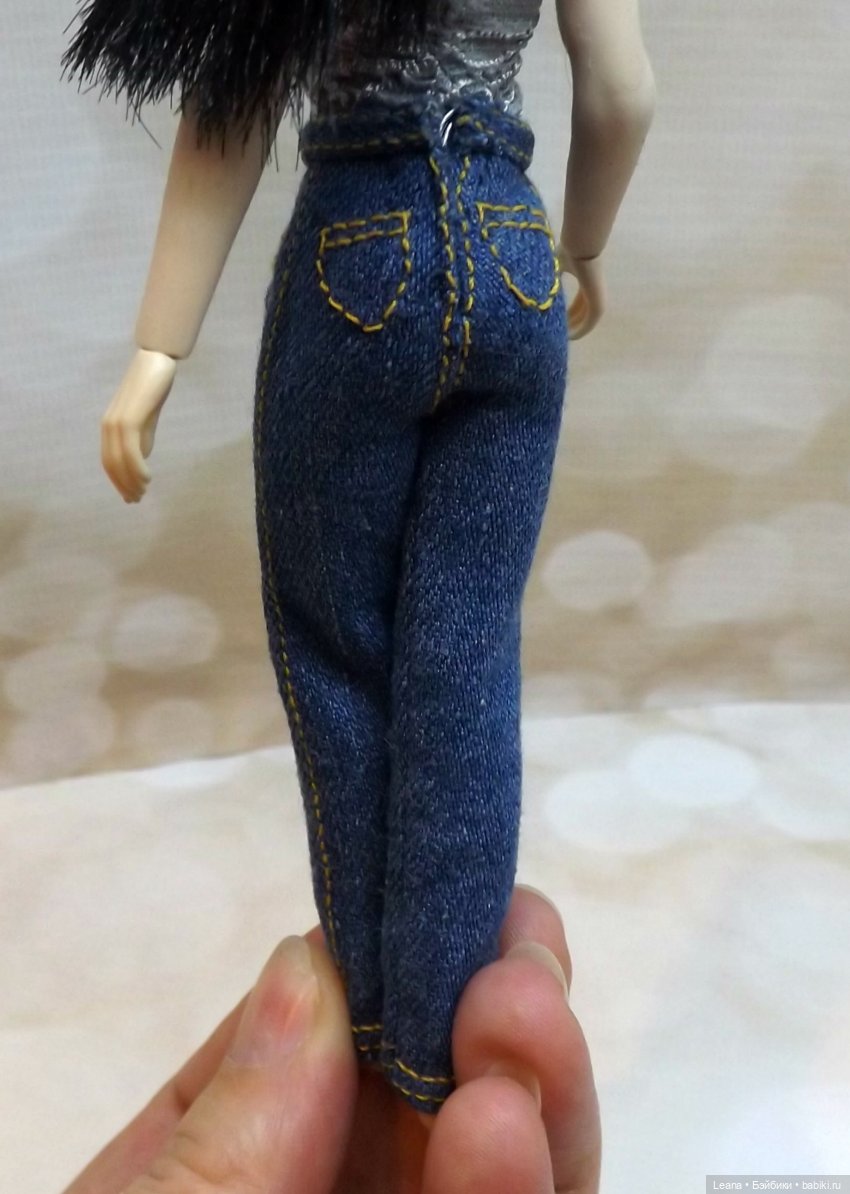 Самое обидное в этой ситуации, что когда я до дома дошла и примерилась к ткани. Джинса оказалась СЛИШКОМ толстая. Чуть без рук не осталась, пока вот эти джинсы из неё шила. Игла кое-как проходит. Для «человеческих» самое оно, а вот для кукольных — слишком толстое. В итоге получилось конечно, но работать с этой тканью — ЖЕСТЬ АДСКАЯ!