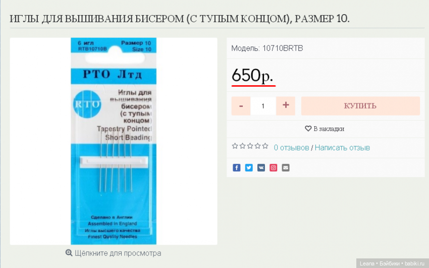 PS: такая накрученная пришла, т.к. сейчас иглы, которыми шью, увидела в продаже за 650р при том что они 100р стоят (в магазинах за 200р)