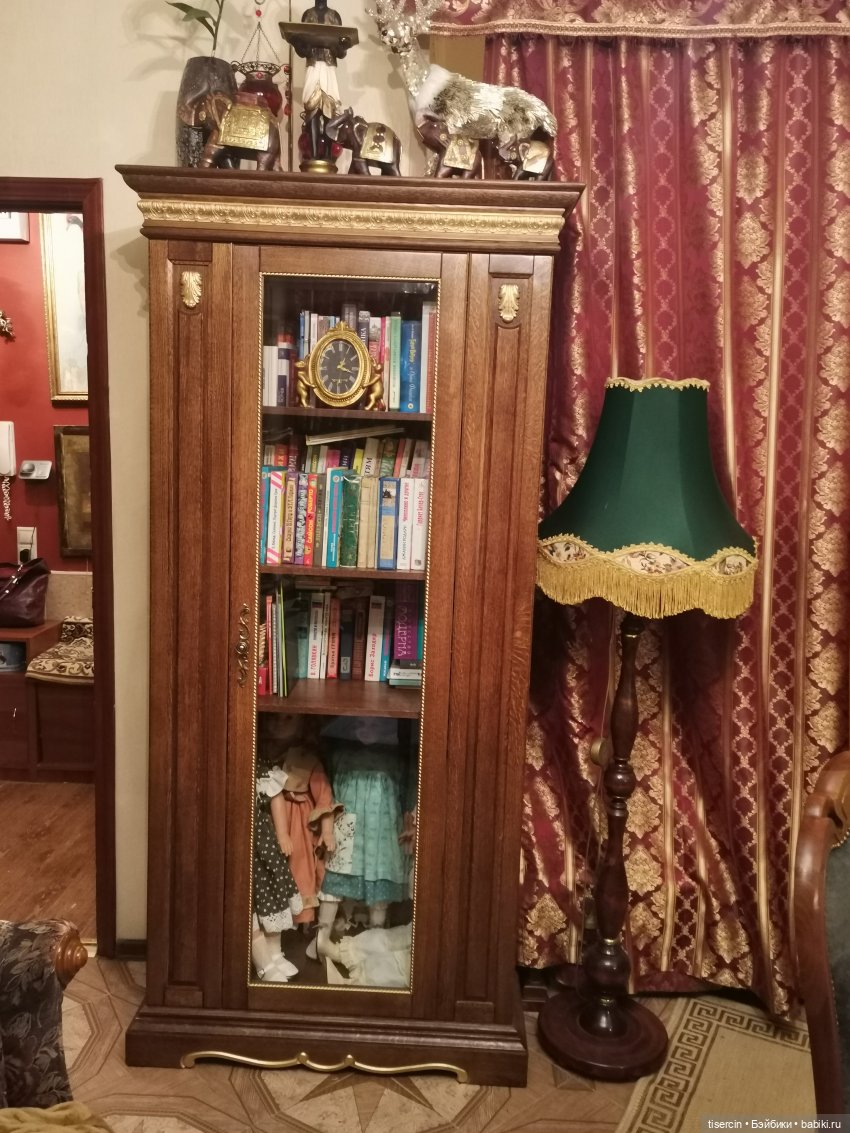 Смотрите серию «Милана». Если у Вас такие дорогие куклы, то и шкаф надо из дуба. Хотя Ваша витрина мне тоже нравится. Если шторки повесить от солнца?