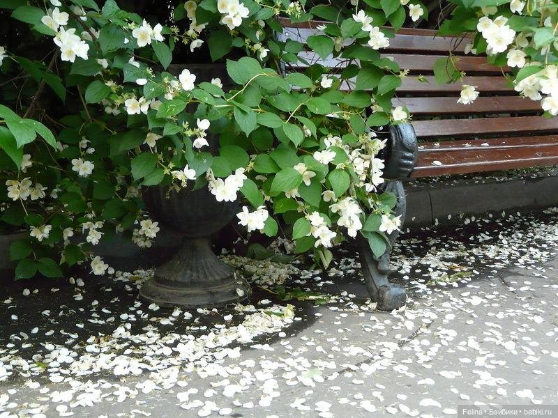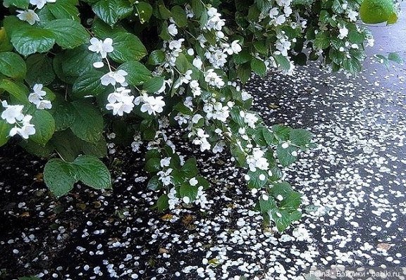Некоторые сорта жасмина имеют цветение до 50 дней. Но скоро жасминовые денёчки заканчиваются и бесшумным дождём лепестки прольются на землю!