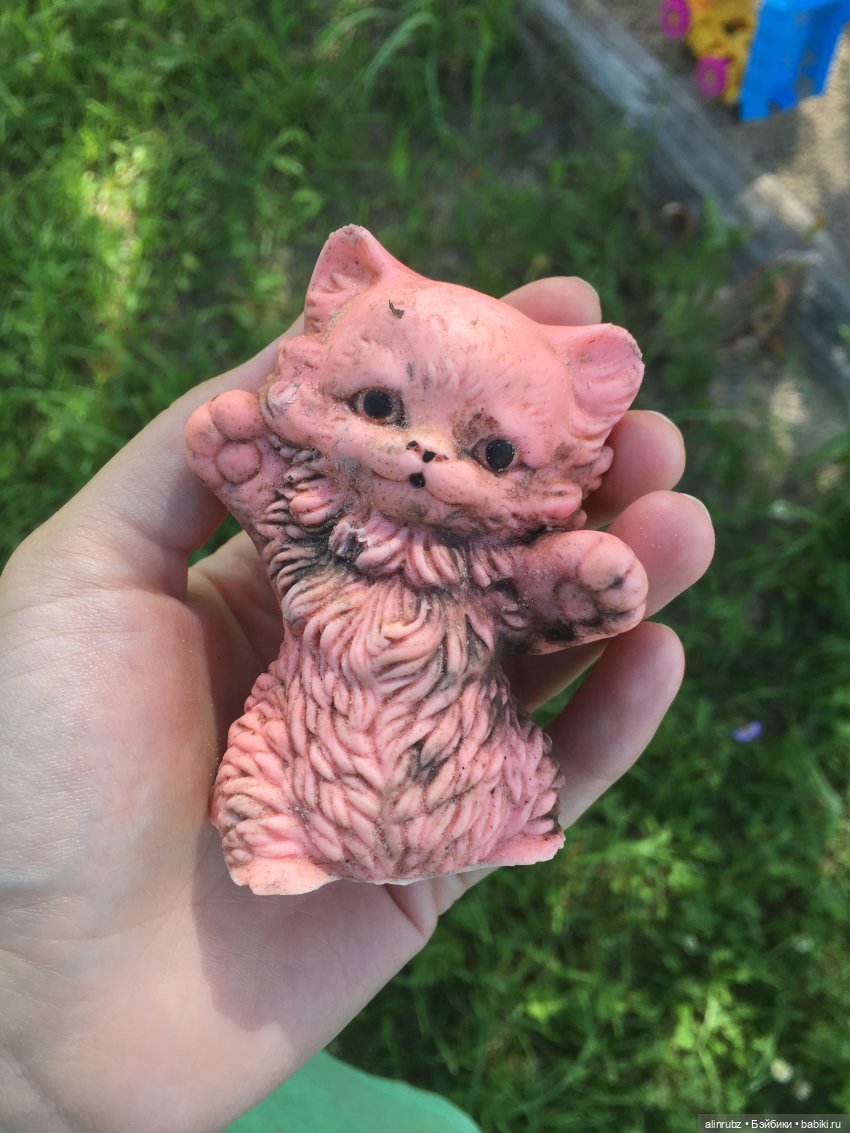 Маленькую резиновую куколку нашла на обратном пути в лесной помойке. Признаться честно, брать не собиралась, но что-то заставило всё же положить её в пакет. В кукольные волосы вросло какое-то растение, а сама она была покрыта мхом и лишайником! Девчушка уже стала частью экосистемы леса, но я порешила её судьбу) долго к ней не притрагивалась, потом положила в песочницу на нашем дворе, совсем про неё забыла, так как она казалась мне безнадёжно чёрной и, в целом, обреченной на существование в песочнице. Но солнце сделало своё дело и личико начало очищаться!