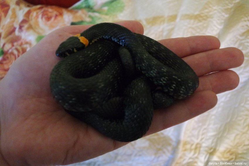 Я тихонько погладила ужика по тельцу. Да, приятный и теплый. Длиной змейка была чуть побольше полуметра.