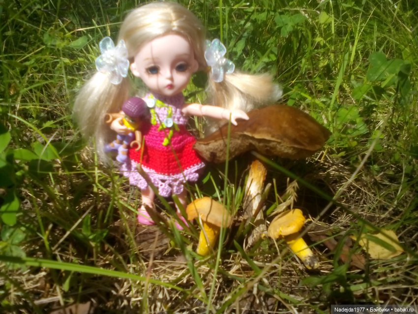 Прошедшее воскресенье было тёплым, возможно это было последнее тепло. Было бы глупо им не воспользоваться, мы собрались в лес за грибами и не пожалели о времени, проведённом в лесу. Моя Пионка не была на улице ни разу и сильно заволновалась, что её опять забудут, выпросила пальто у подружки по полке и прыгнула в сумку в последнюю минуту. Для неё всё было сказкой, она бегала от пенька к пеньку и визжала от радости, что может быть полезной в поиске грибов.Смотрите сами, грибов домой мы привезли не мало, на зиму хватит, спасибо моей шустрой Пионке!