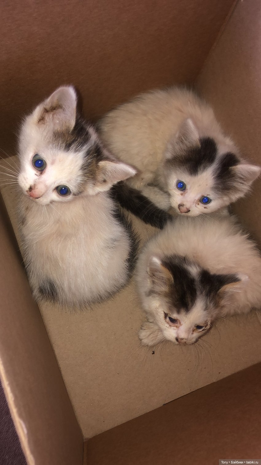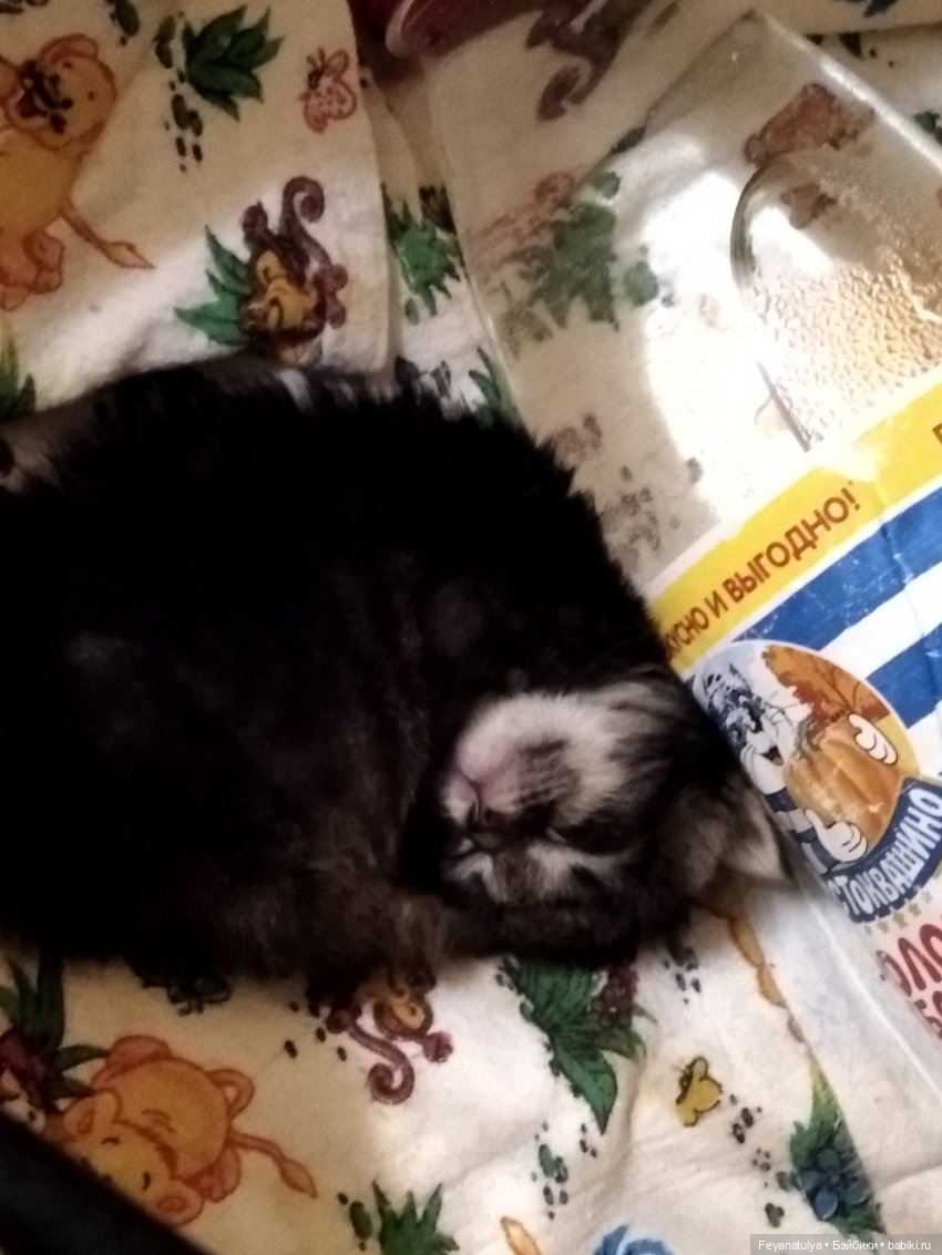 Дело было 14го августа вечером. Я шла назад с прогулки со псом и услышала писк котят, но не смогла найти где именно. Следом чуть позже вышла гулять племяшка и нашла — «добрый» человек выкинул к нам в мусорку пакет с новорожденными котятами, которым было около суток. Перемешанные с соломой и кровью, у одного были пережаты задние лапы. Соседка достала из подвала коробку, накидала туда тряпок, сложила котят и оставила на улице. Дите все в слезах пришло домой. Сестра порычала и на козла, что их выкинул, и на соседку и на жизнь в целом и забрала короб домой. Настелили чистых мягких тряпочек, положили мягкую игрушку, поставили грелку. Ну, и как обычно любое такое событие происходит именно тогда, когда у семьи нет денег — у кого еще, у кого уже. Пришлось собирать донате. И спасибо всем, кто помог, ибо несколько раз мы ездили в клинику на такси (машины нет, а любая клиника от нас прилично далеко), операция, антибиотики, бутылочки, козье молоко, иммуномодуляторы — все это вышло в приличную сумму.