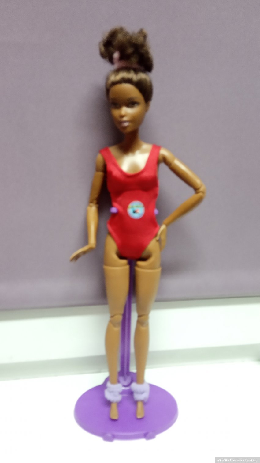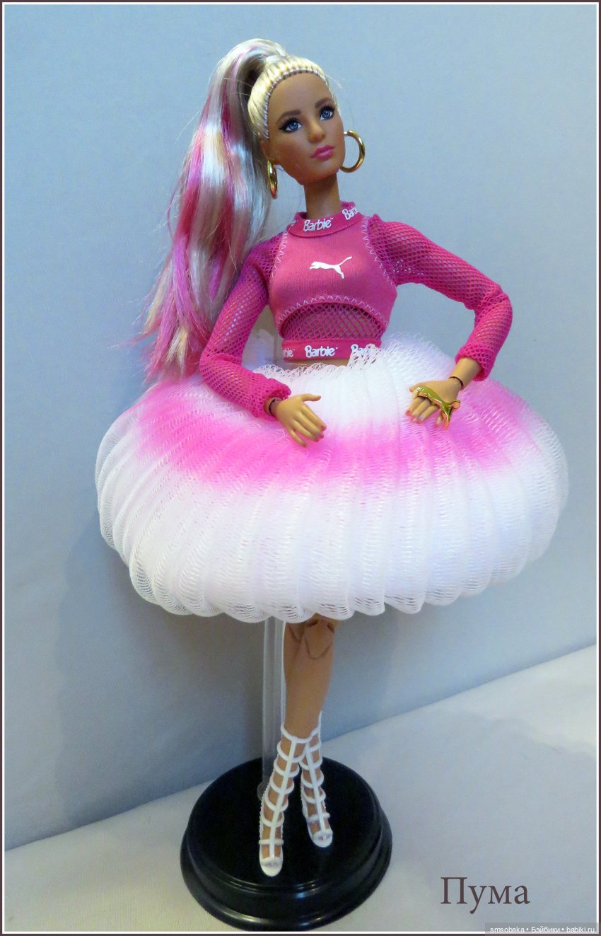 Но вот для обычной Барби, он тоже малость не подходит, кукла падает. Для пухляшек, вариант закрепления за ножку подходит, но смотрится весьма странно