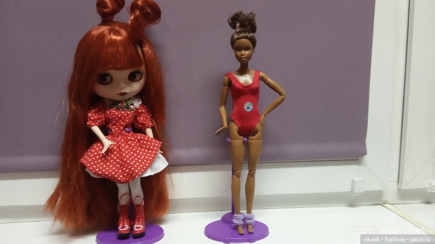 И вот тут я начала понимать, что-то пошло не так… Когда я заказывала эти подставки, у меня не было Монстряшек и брала я их только под Барби. Но вот проблема Барби в эти подставки запихнуть не возможно. Вернее в некоторые возможно, но либо в голом виде, либо в очень облегающем наряде. Но тут возникает проблема, высота подставки маловата и держатель куклы входит на основу маленьким краешком, что понятное дело не вызывает доверия, от любой тряски кукла падает.