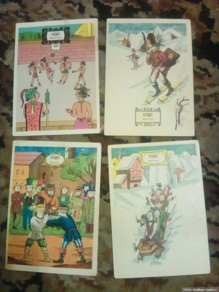 Это набор открыток о происхождении разных видов спорта.