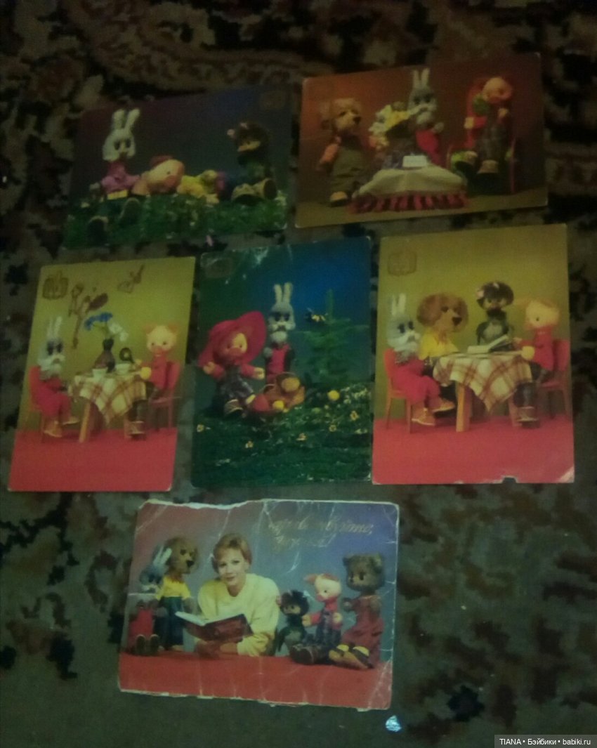 Нижняя открытка, где тётя Таня Вееденеева, была обложкой. Как ни берегла, дети всё равно добрались. Обложку открытой сделали и художества свои оставили.