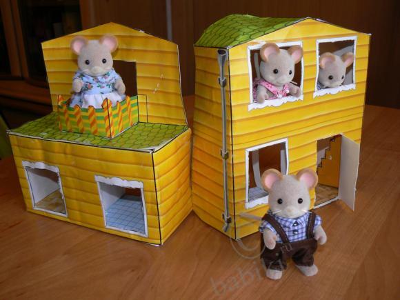 Эта мышиная семья поселилась у нас всего 2 дня назад, на дочкин день рождения. Пока они временно живут вот в таком домике, который старший сын очень кстати вырезал из «Классного журнала», сам собрал и склеил, в следующем номере журнала будут обои и мебель для нашего домика (простенько и не совсем аккуратно, но детям он очень нравится, потому что брат для сестрёнки сделал своми руками).