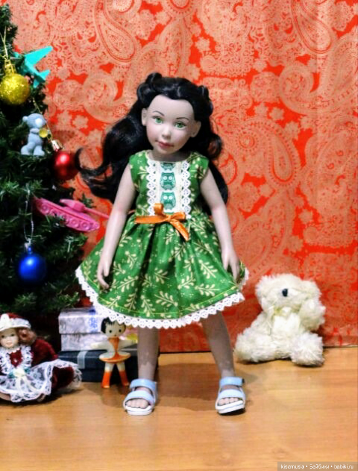 У меня сейчас под рукой в телефоне нет праздничных фото с куклами, но в гости попросилась моя малышка в новом прекрасном праздничном платье!