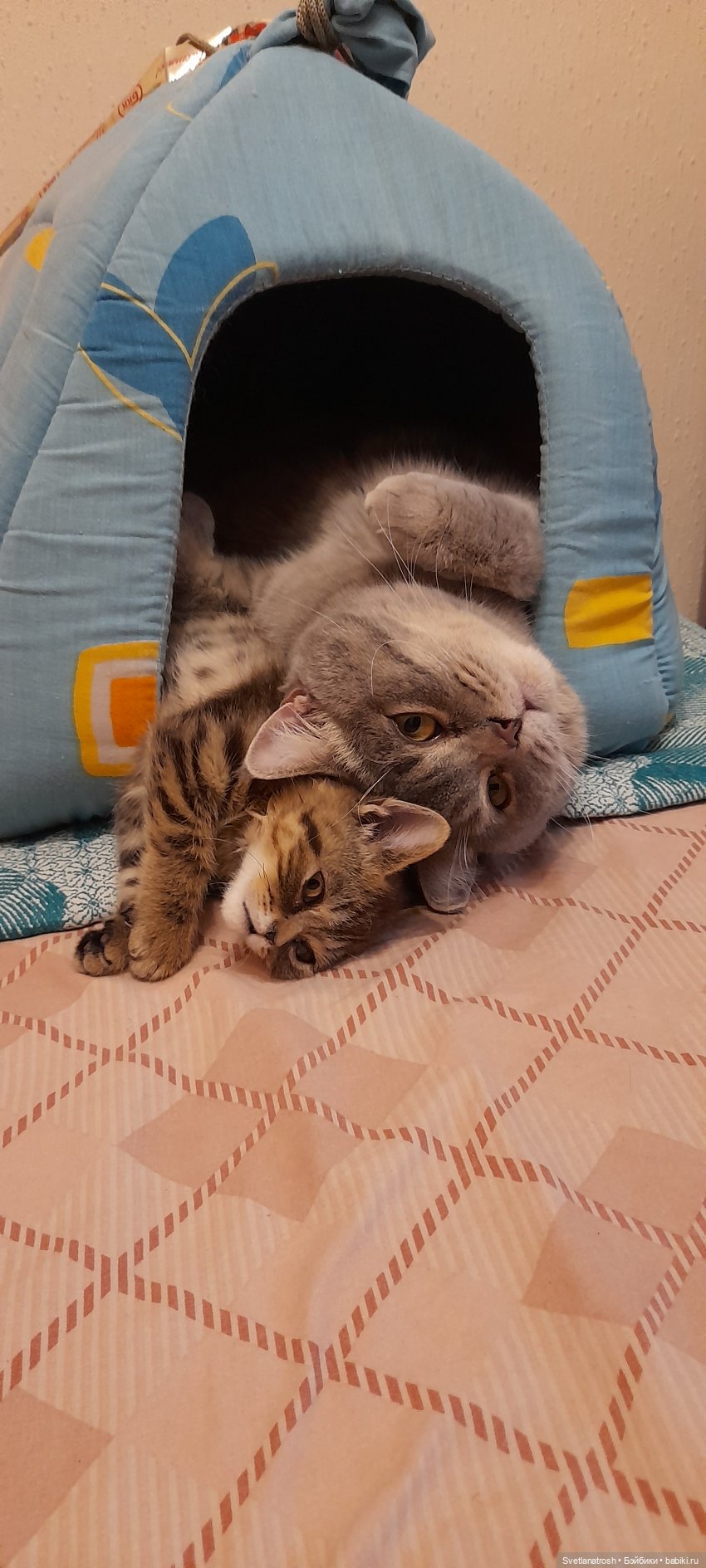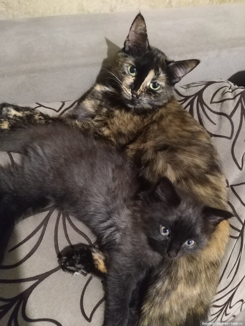 Сейчас с нами живет найденыш в саду Маркиза черепахового окраса- гордая и неприступная, кошка, которая гуляет сама по себе. На фото она и ее сынок, которого забрали в добрые руки, Кузя