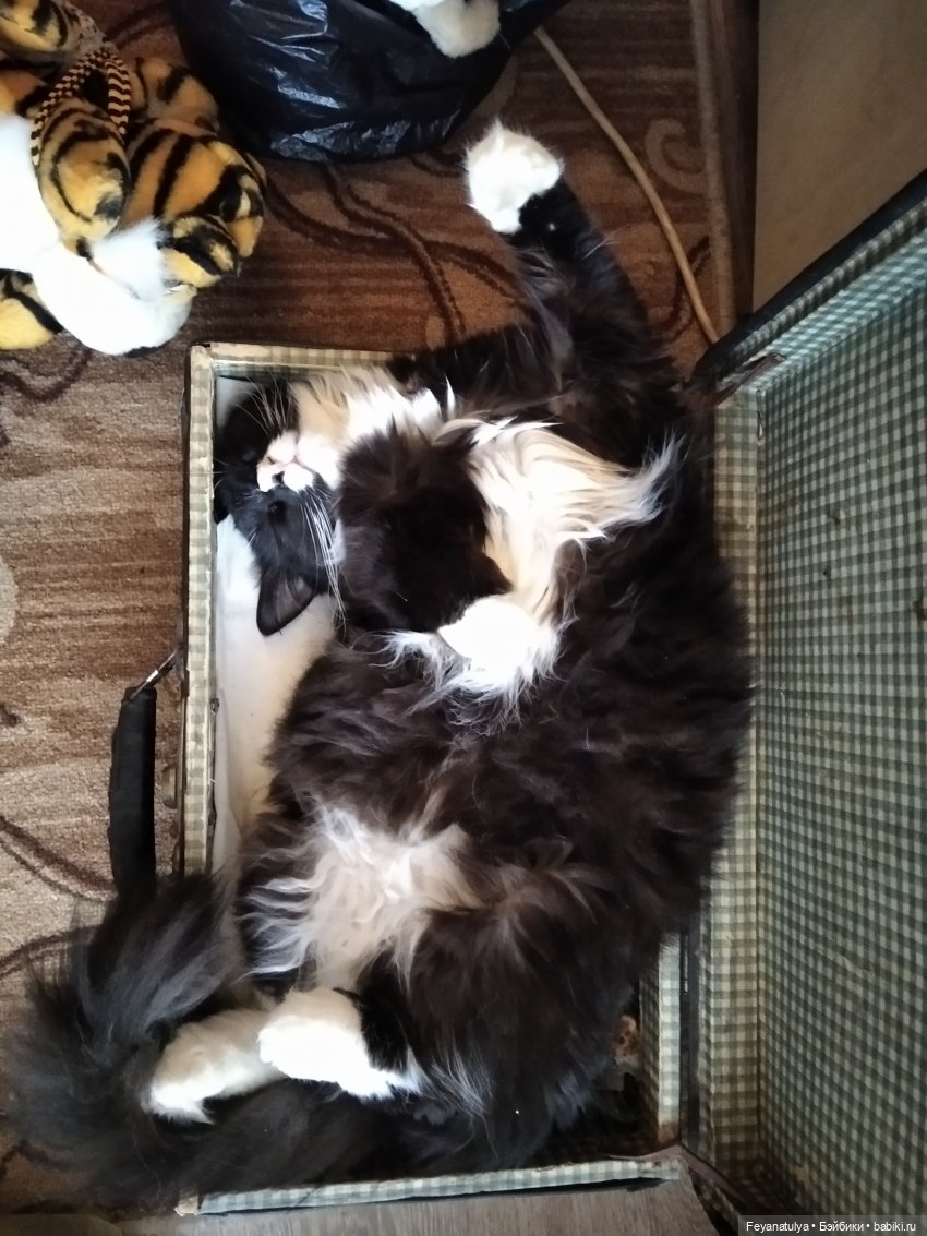Полосатый в маму, а белые манишка и носочки, как у папы.