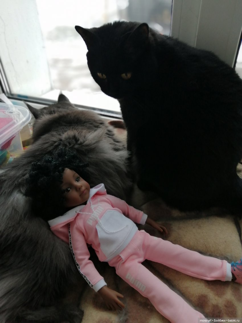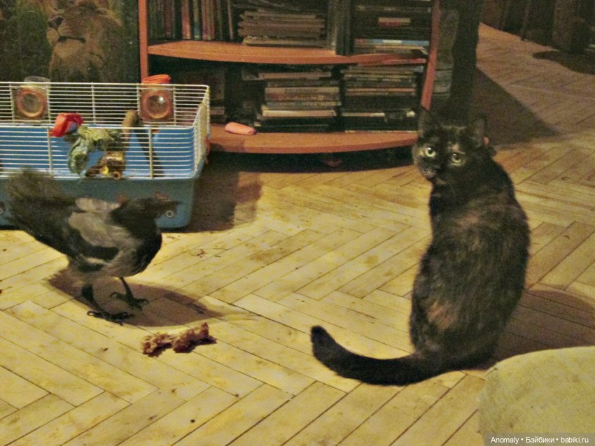 А остальные да, хорошо контачат между собой ) Старшая кошка рулит, даже ворона её уважает и признаёт главной ) Хотя он, Фёдор, нагловатый своенравный товарищ.