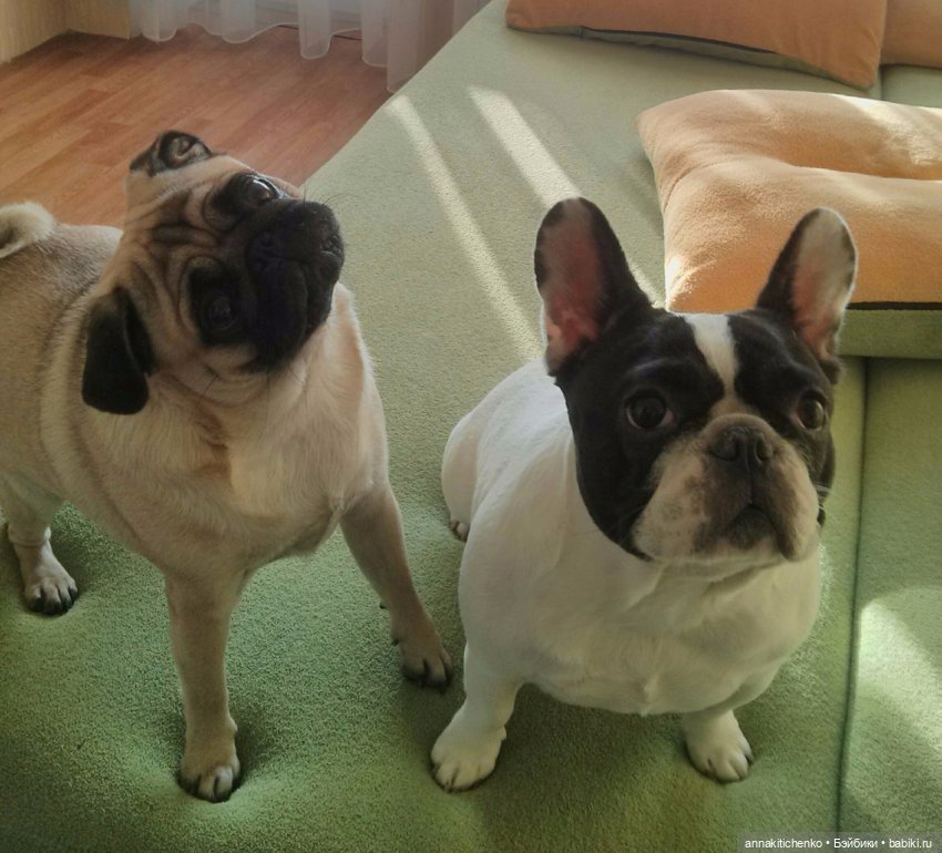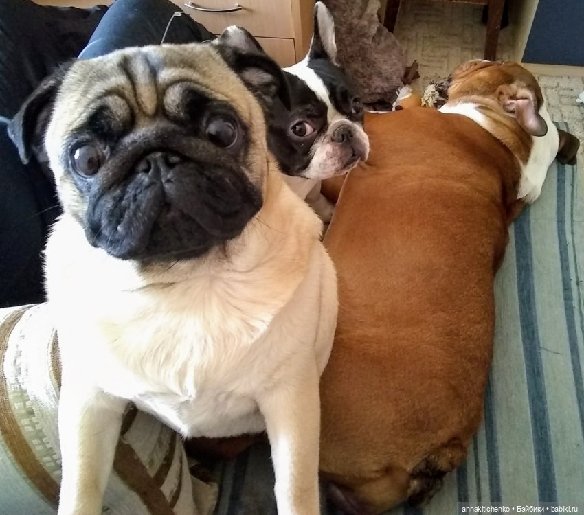 А это тоже наши любимые хвостики, мопсюшка Сонечка и французская булочка Бэтюша