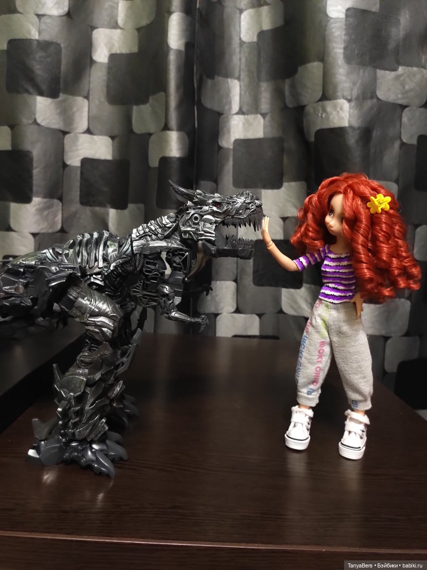Когда только начала собирать кукол, муж сказал почему бы и нет и припер в дом своего первого трансформера)))))) говорит в детстве всегда мечтал)))) а я его экспонаты иногда тырю для фоток)