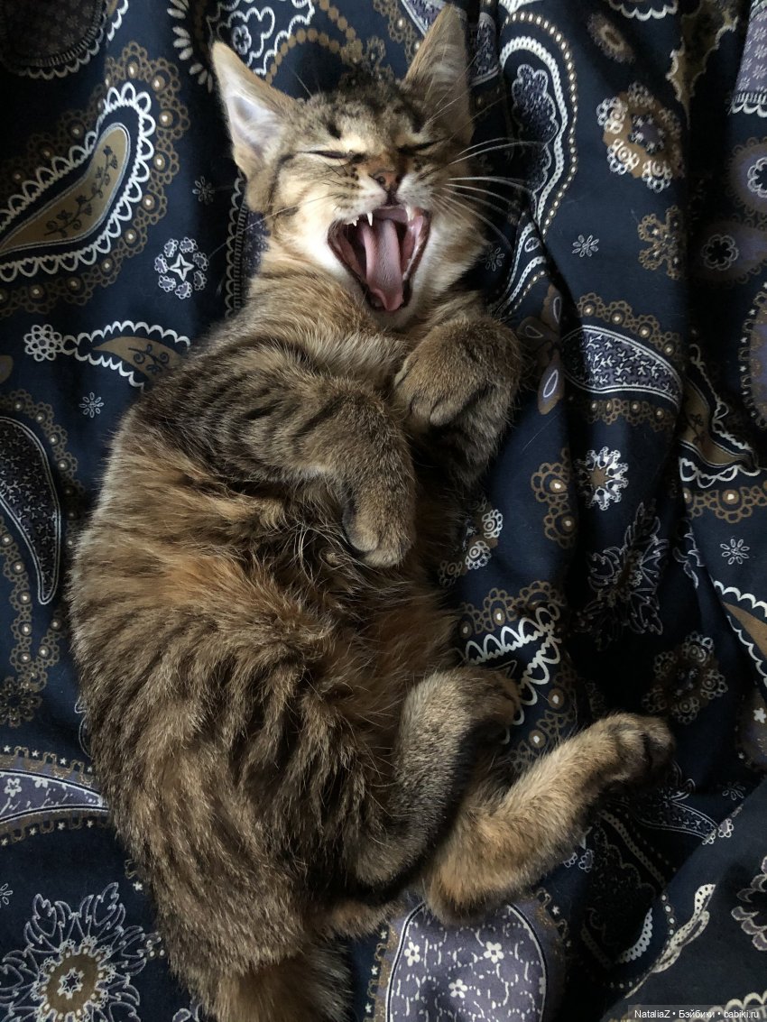 Я это все действо проспала, а потому утром меня встретил мааленьки и жутко голодный котеночек, который ничего не ел с вечера… Интересно, куда в нее вмещается?