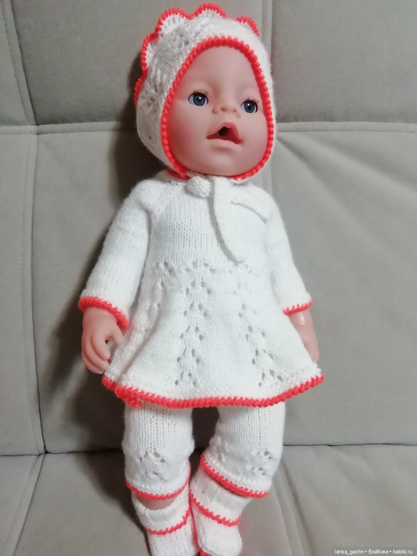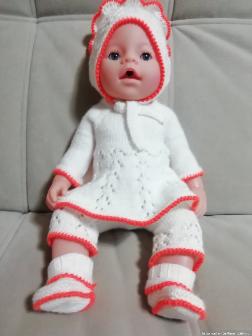 Вязаный костюмчик хотелось бы рассмотреть поближе.
