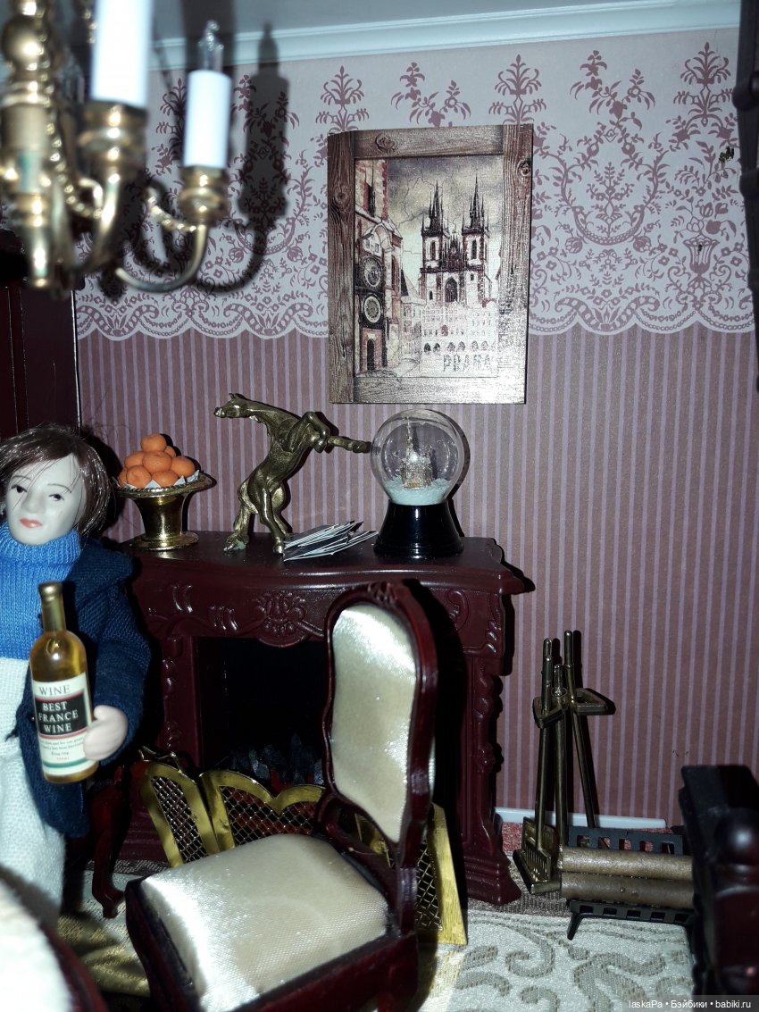 Сейчас в силу своих размеров он стоит в Доме Мечты (1:12), приклеен к камину во избежании падений.