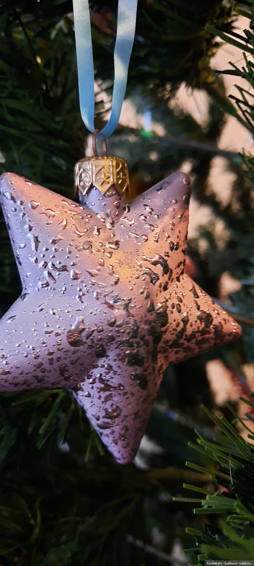 А у нас на верхушке звездочка, которая светится, тоже из детства.
