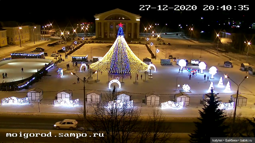 Сегодня выбралась наконец-то к ёлочке! Красота необыкновенная. В этом году у нас новая ёлочка. И вообще все красиво! Такая вот сказка на родине доброго волшебника — Деда Мороза! Жаль фигуры не светились. Наверное, позже включают. Когда они светятся, очень шикарно смотрятся- там шары, олень с олененком, снеговик и другие! Предлагаю Вам полюбоваться нашим прекрасным городом!