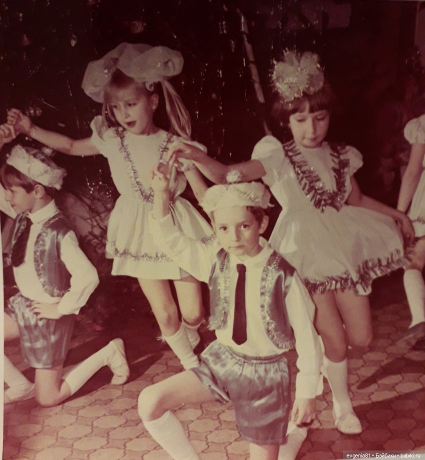 Платья нам выдали в садике специально для этого танца. Они были все одинаковые и расшиты мишурой. Но одно платье выделялось более красивой мишурой. Перед утреником мы с девочками стояли в очередь. Каждой из нас хотелось именно то самое платье. Платьишки лежали на столе в ряд. Одна девочка постоянно рассчитывала кому из очереди выпадет это платье, периодически расталкивая всех и занимая нужное место. И вот подходит ее очередь и очередь платья с красивой мишурой, и тут воспитатель берет другое платье и надевает на неё. А красивое платьишко надели на меня
