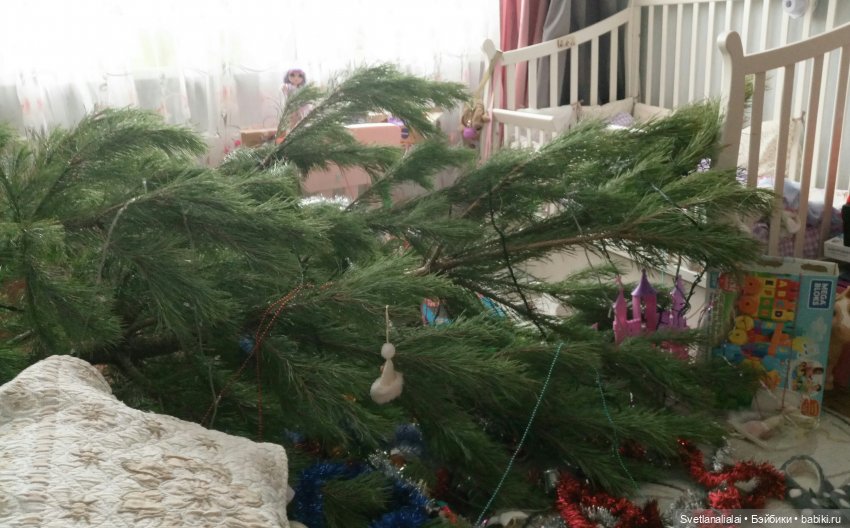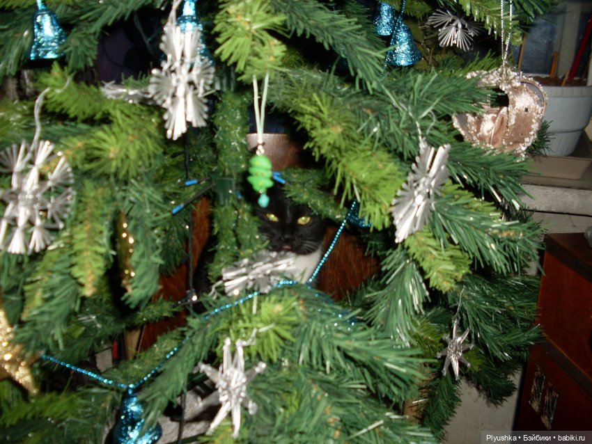 Но 1,5 года назад у нас поселился бандит Сёма. Из-за него уже второй год большую ёлку не ставим, наряжаем маленькую искусственную и веточки в вазу ставим.