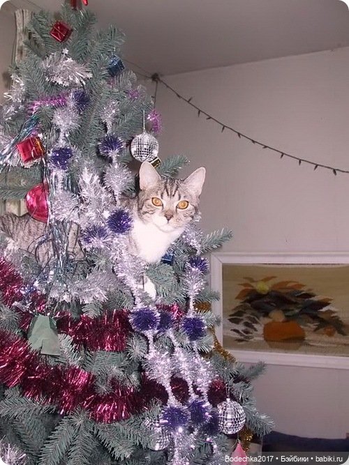 У меня был кот Баксик и он ёлку не трогал вообще, но любил около нее фотографироваться!